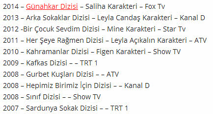 снимается в кинофильме, а затем вся ее карьера будет связана с телесериалами на турецких каналах . Правда в начале своей