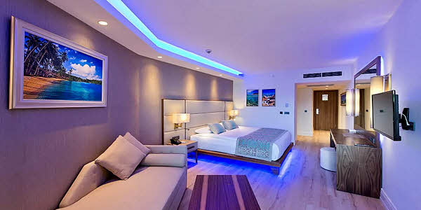 Один из лучших отелей в Олюдениз 4* для отдыха летом по программе "все включено" расположен в двух местах - в центре поселка (Hotel) и на берегу залива "Голубая лагуна" (Beach Club). Если в первой гостинице отдыхают преимущественно взрослые туристы, то во втором - взрослые с детьми (детсад/младшая школа). Гостиница предоставляет очень качественные услуги, подтвержденные громадным количеством сертификатов и наград. Suncity позволяет туристам пользоваться инфроструктурой обоих гостиниц (например, лежаки и зонтики), но питаться можно только в своем гостинице. Номерной фонд включает стандарт (включая кровать для ребенка) и более просторное фамили рум. Питание AI осуществляется в нескольких ресторанах и барах в течение дня.