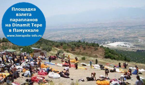 Все компании, продающие подобные экскурсии, привозят туристов на стартовую площадку на горе Dinamit Tepe. Она расположена севернее входа в парк-музей Памуккале, в 30 минутах медленной езды на автомобиле по грунтовке. Cтартовая площадка расположена на высоте 300 метров над уровнем моря, достаточно широкая и длинная. После этого профессиональные пилоты расскажут о процедуре старта, полета и посадки. Также они акцентируют внимание на том, "что можно и нельзя" делать во время полета. Увы, но общение в интернациональной группе ведется на английском языке! Теперь остается дождаться очереди на старт. Пробежка из пяти шагов и очередной турист оказывается в воздухе, его задача наслаждаться волшебными пейзажами. А управляет парапланом - пилот, сидящий за его спиной.
