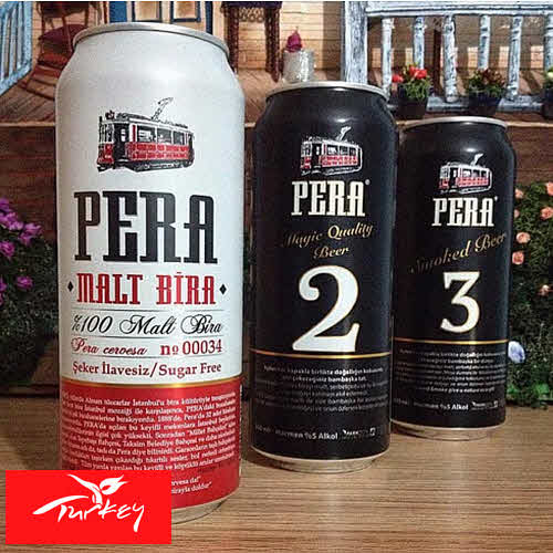 Пера был когда-то современным районом Бейоглу в Стамбуле. Пивоварня выпускает несколько марок турецкого крафтового (лофтового) пива бренда "Pera" под номерами. Во-первых, это хорошо известный hefeweizen или "белое пиво" («дрожжевое пшеничное»), получившее название №2. Далее вспомним о пиве верхнего брожения Kölsch под названием №1. Наконец, пора вспомнить о пиве р №3, которое является копченым пивом. Сказать честно, это особые сорта, которые просто обожают пивные снобы Стамбула. Например, kölsch имеет светло-золотистый цвет и крепость 4,1%. Это гладкое и сладкое пиво определенно похоже на американский Miller Lite или что-то подобное. Теперь о копченом пиве, сваренном определенно для своего нишевого потребителя. Его можно редко обнаружить в баре, но удачный искатель может найти его в маркете Бейоглу. Эта марка имеет янтарный цвет и крепость с ABV 5,1%. Аромат с непривычки сложный, вкус еще более странный, будто вы пьете жир из гриля. Если запивать им копченое или жареное мясо, то последнее компенсирует тяжелый копченый вкус пива. В этот момент вы явно различаете жареный солод, который имеет неожиданно довольно приятный вкус, если сможете преодолеть дымность! Cамое ходовое пиво и вкусное, пожалуй, это пиво №2. Крепость 5%. Имеет сладкий вкус и яркий золотой цвет. Хорошо сочетается с любой едой. В заключение расскажем о новых марках пива "Пера". №5 это нефильтрованное и непрозрачное, №6 - с ароматом корицы и №7 - со вкусом жевательной резинки Есть еще "Zikkim - IPA" с черепом на этикетке. Кажется, это просто бомбическое пиво!